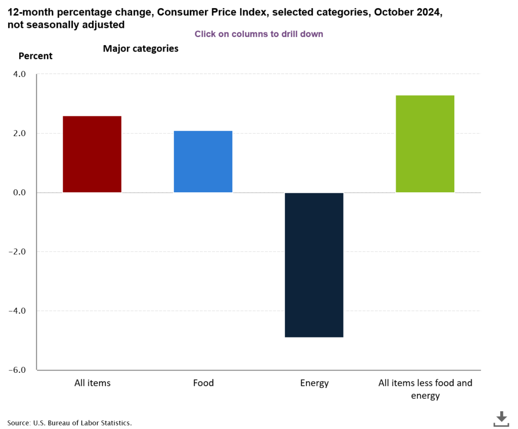 US October 2024 12-Month CPI Inflation Rate: 2.6%